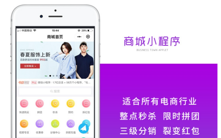拼团小程序开发知识付费秒杀抢购商城分销平台系统软件定制